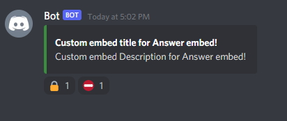 And after that you should have made a Reaction Embed! Congrats! So when someone reacts to the message a channel will be created and the Answer Embed will be sent.