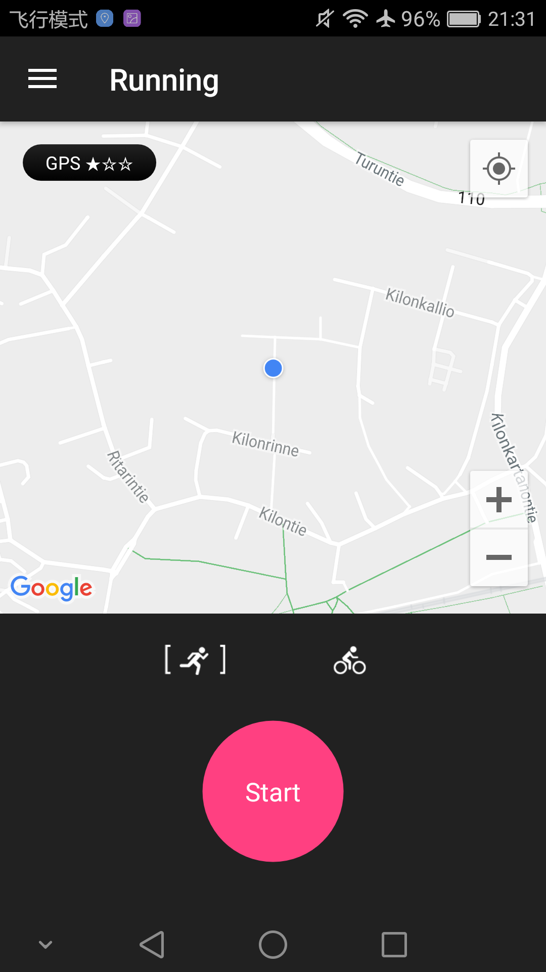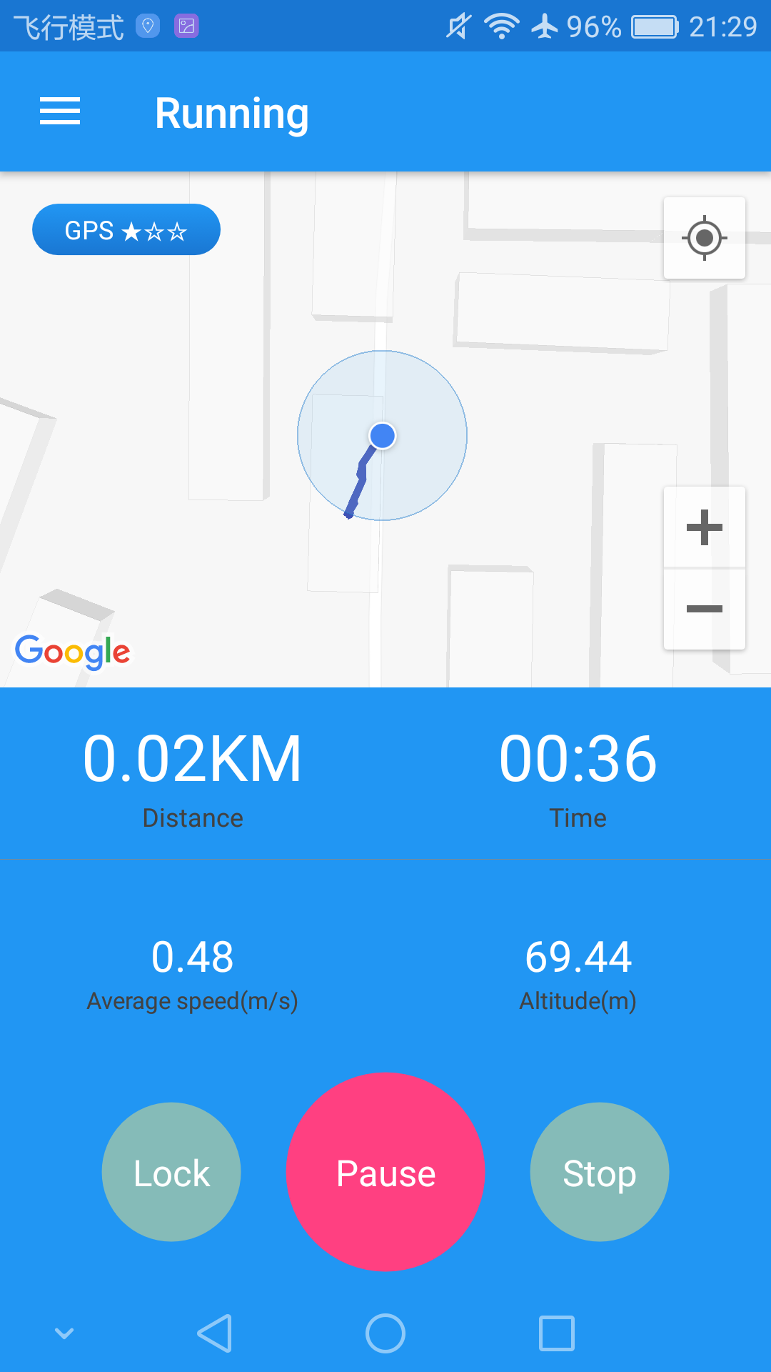 It requires GPS and Network permissions, the former one is used to locate yourself while running, the latter one is used to upload your running data to web database. And you need a Google Maps API key and paste your key into [google_maps_api.xml] (app/src/debug/res/values/google_maps_api.xml)