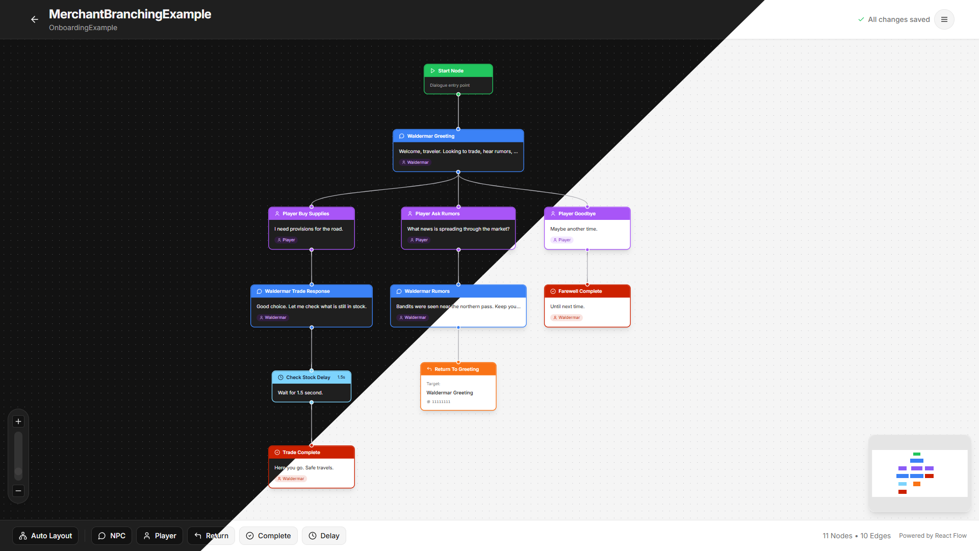 - Visual node-based dialogue authoring