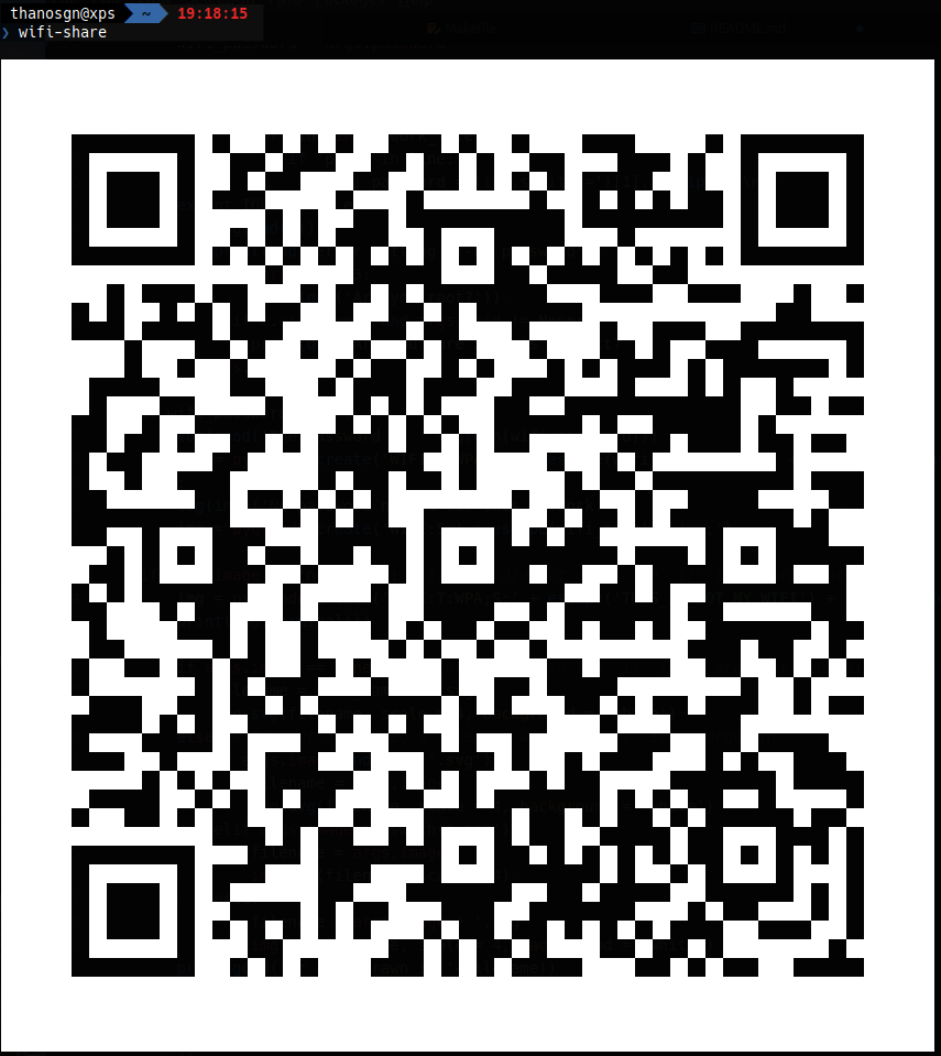 All the below arguments are optional. The default behavior is to generate a QR code on the terminal for the network you are currently connected. However, there are many options available if you want something besides the default scenario.